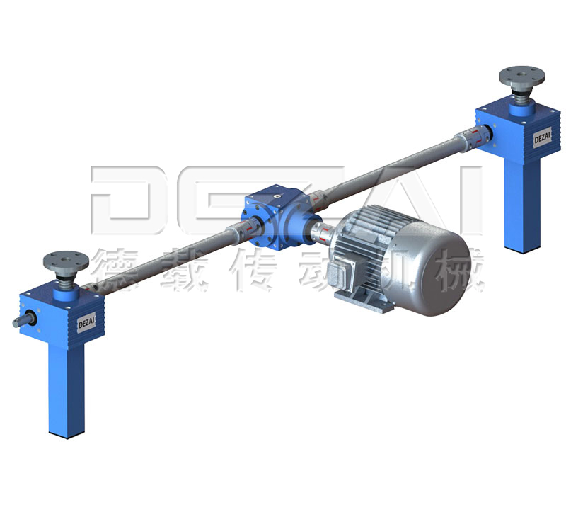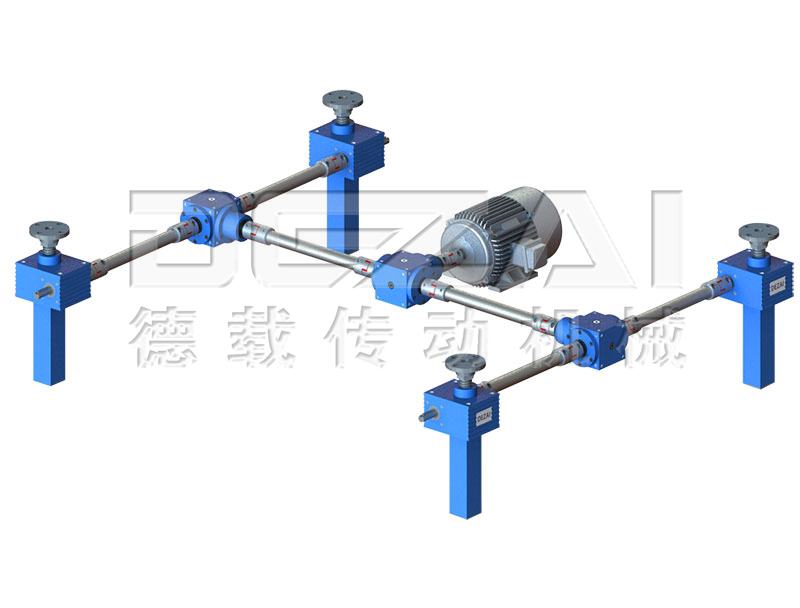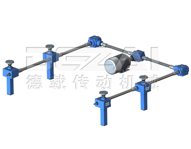 絲桿升降機(jī)可以與錐齒輪換向器,傳動(dòng)軸,聯(lián)軸器,電機(jī)等組件以多種形式組合為升降系統(tǒng),并通過限位開關(guān),光柵尺等電控系統(tǒng)進(jìn)行精確定位控制。作為整體升降系統(tǒng),各臺(tái)升降機(jī)的同步誤差可以控制在0.01mm左右,該絲桿升降機(jī)已被廣泛運(yùn)用于自動(dòng)化升降平臺(tái)中 “H”,“U”,“T”和“I”型為目前較為常見的升降組合方案,下圖中的升降機(jī)數(shù)量可以根據(jù)實(shí)際需要進(jìn)行增加或組合,以實(shí)現(xiàn)六臺(tái)聯(lián)動(dòng),八臺(tái)聯(lián)動(dòng)等。另外升降機(jī)也可以通過電控系統(tǒng)進(jìn)行獨(dú)立控制(而非機(jī)械式串聯(lián)),也可實(shí)現(xiàn)多臺(tái)聯(lián)動(dòng)的效果。