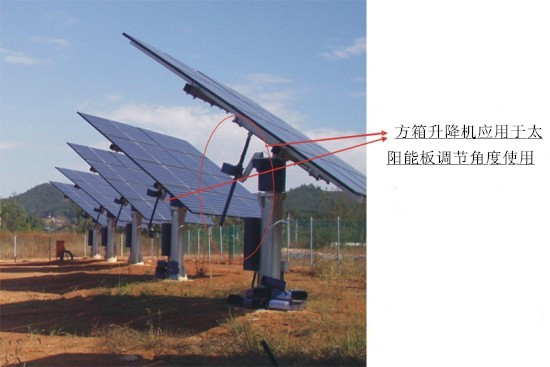 給升降機加上安裝座,絲桿頭部推動太陽能板調(diào)整角度,使板面和太陽成一定的角度獲得更多的能量。...
