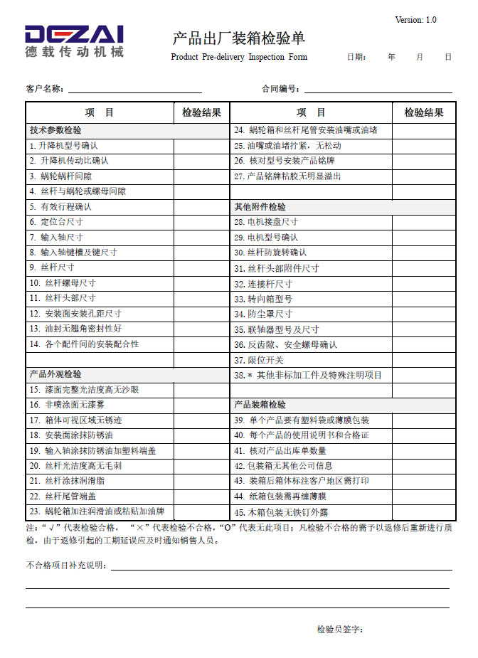 ? 45項(xiàng)基本檢查項(xiàng)目,確保發(fā)貨產(chǎn)品質(zhì)量。