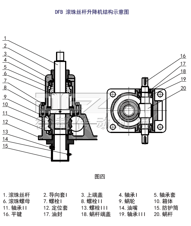以我們新款DFB滾珠絲桿升降機(jī)為例(如下圖),主要零件有20種,所以升降機(jī)是20種零件的組合體,工人在裝配的時(shí)候,每個(gè)零件的位置都不能出錯(cuò),對(duì)裝配工人的技術(shù)和熟練程度有一定的要求。