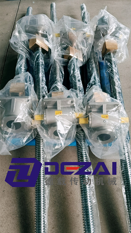螺旋絲杠升降機的箱體標準為球墨鑄鐵和鋁合金壓鑄,可非標做成鑄鋼體或不銹鋼體。絲桿材質(zhì)標準為45號鋼,可非標做不銹鋼絲桿,但是只用要注意,同規(guī)格的絲桿,不銹鋼絲桿的承載能力比45號鋼材質(zhì)的絲桿低。蝸輪標準為9-4鋁青銅,如果對產(chǎn)品質(zhì)量有更高的要求,可以非標做成離心鑄造后車制而成的錫青銅蝸輪。
